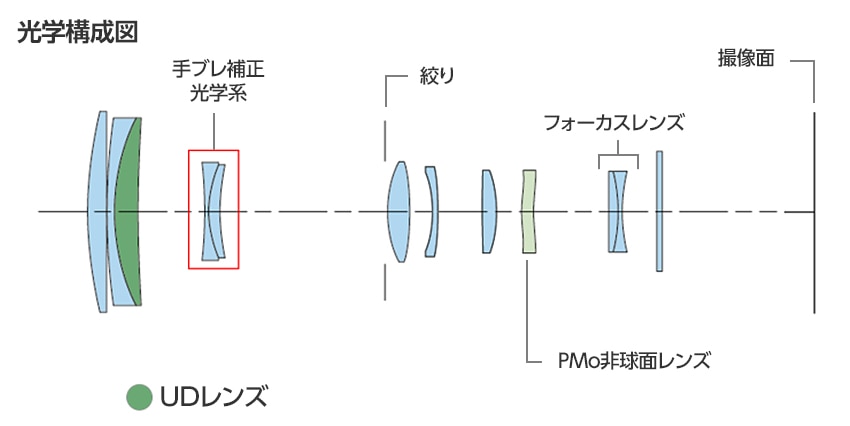 写真の色にじみを効率的に除去するUDレンズ。鮮明で美しい描写と、コンパクトなレンズ設計を可能にします。