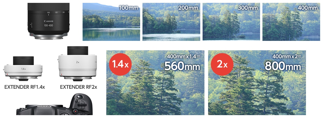 焦点距離を1.4x/2x に望遠化する、EXTENDER RF1.4x/2x に対応。最大800mmの超望遠レンズ撮影を手軽に楽しむことができます。