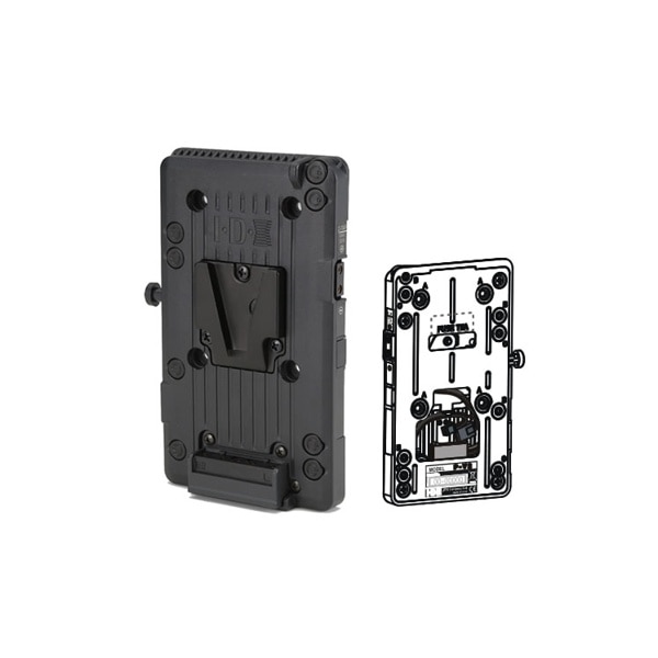 P-V2はVマウントを標準装備していない機器に、ENDURAバッテリーを装着するためのプレートです。電源コネクターとD-Tapコネクターからの出力が可能です