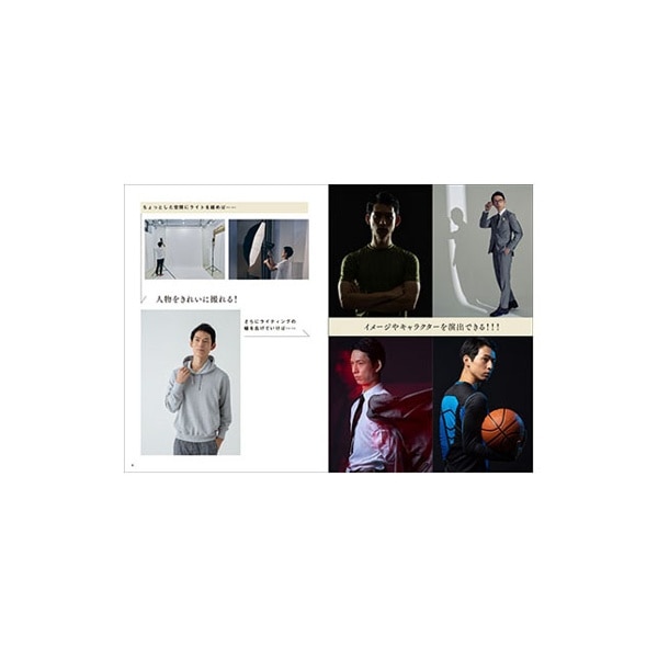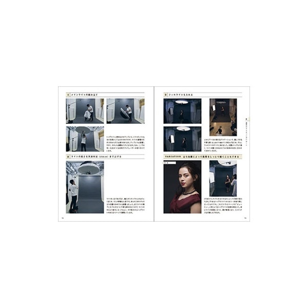 紙面は機材の配置図や手順解説を入れて初心者でもわかりやすく、大きな作例掲載で、クライアントやモデルとイメージを共有・提案する資料にも使えます。