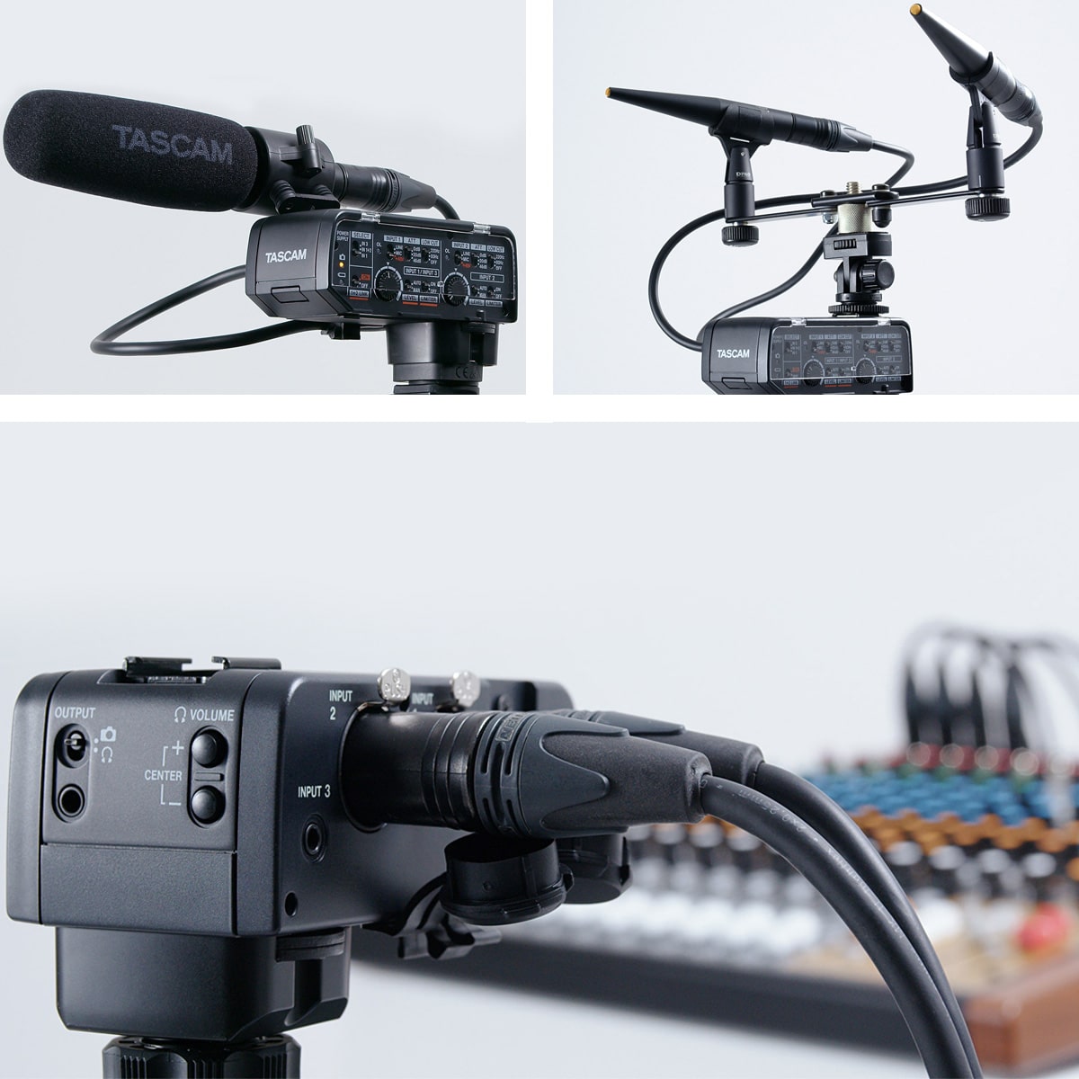 『CA-XLR2d』は、ショットガンマイクでのインタビューや対談の収録、ステレオマイクでの音楽や風景の収録、更には、音声ミキサーを使用した各種イベント収録など、コンパクトで柔軟な動画音声収録システムを実現します。