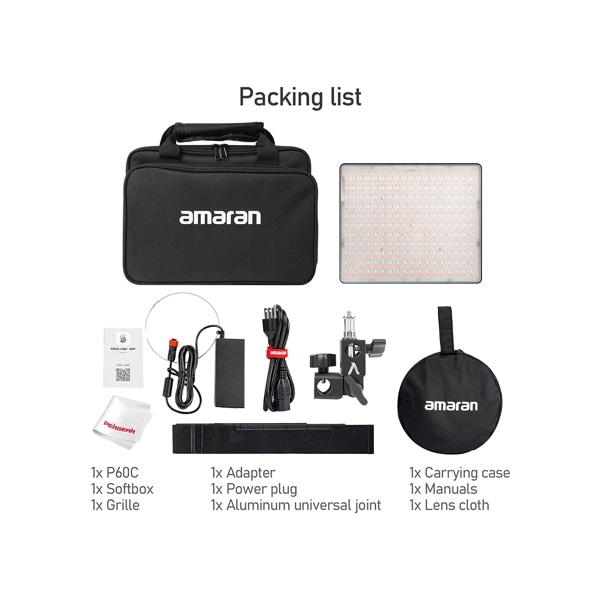 AC Adapeter電源を介して世界中で使用できますが、AC電源が利用できない場合は、オプションのNF-F970バッテリー電源でも動作します。また、Amaran P60Cのライトビーズは高密度に配置されており、カスタム光学レンズをセットすることで、均一な光の混合とパワフルで安定した出力を実現しています。ソフトボックス&ユニバーサルコネクター&超静音ファン: