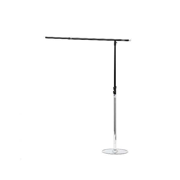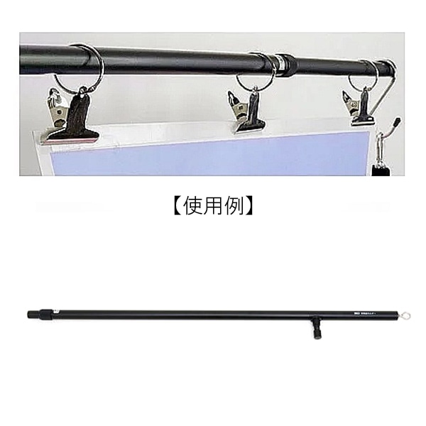 背景紙などを吊り下げる用のアームです。微妙に角度がついており 背景紙を取り付けるとちょうど水平になるように設計しています。 一脚スタンドに取り付けて、重りでバランスを取ってご使用いただくと 足が1本で済、撮影場所をとりません。