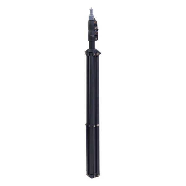 耐久性に優れたダイキャストスチールを使用した、軽量ライトスタンドです。ポールと脚の表面は、滑りにくく反射しにくいフロスティング加工仕様。耐荷重5kg、全伸高2mの万能スタンドです。