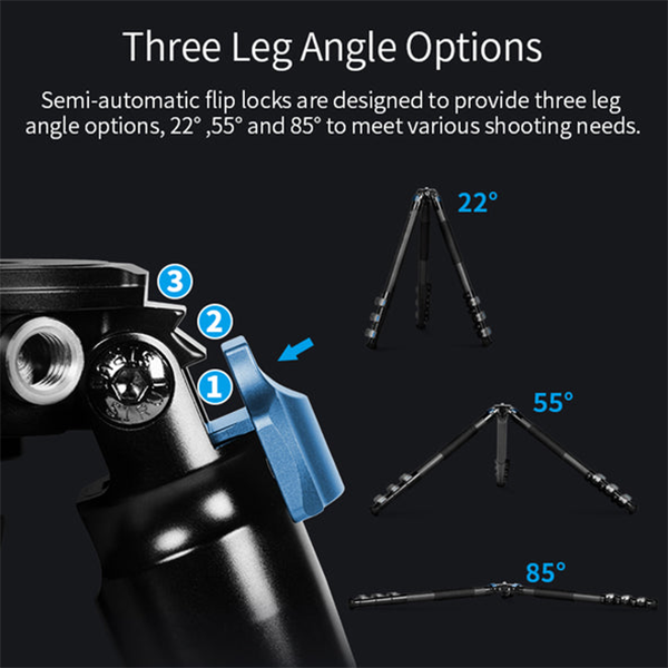 フリップロック設計により、クイックセットアップが可能。高さを即座に調整し、限られた時間内に撮影ができます。強力なロック力により、伸縮後のパイプ脚の安定性が向上し、優れた操作性が得られます。
