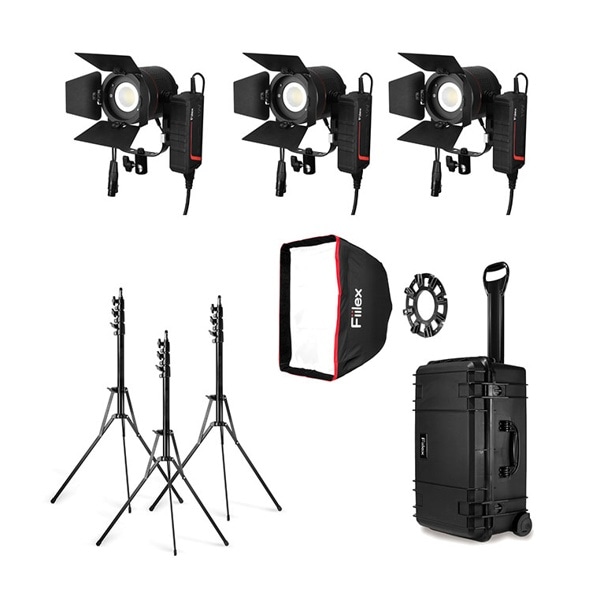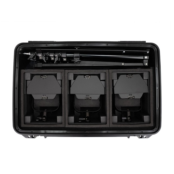 P3 COLOR K300キットには、3つのP3 COLORライト器具、3つの折りたたみ式ライトスタンド、および小さなソフトボックスアクセサリが含まれています。キットは非常に旅行にやさしく、持ち運びに便利なホイールと延長可能なハンドルが付いています。キットの総重量は、ほとんどの航空会社の手荷物料金の重量制限を下回っています。
