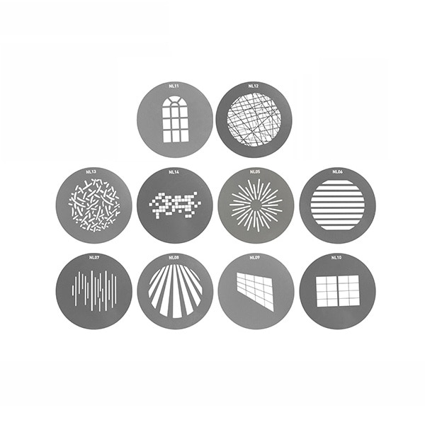 NANLITE AS-GB-FMM-SET1はForza 60/60B/150 用FMマウントプロジェクションアタッチメントマウントに使用できる GOBOディスク10枚セット1 です。