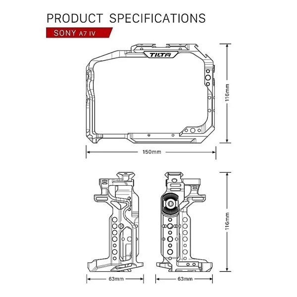 このフルカメラケージは、Sony a7 IV、a1、S3、R4、73、R3、A9と互換性があります。フルカメラケージには、位置決めピン付きの3/8″-16および1/4"-20スレッド、コールドシューレシーバー、タイプIVおよびVIサイドハンドル用のNATOレールが装備されています。 また、ARRI互換のロゼットコネクションと、オプションのシングルロッドホルダー用(https://stores.jp/search?q=Single%20Rod%20Holder&store=cool-leaf-7935) のロッドアタッチメントポートも備えています。