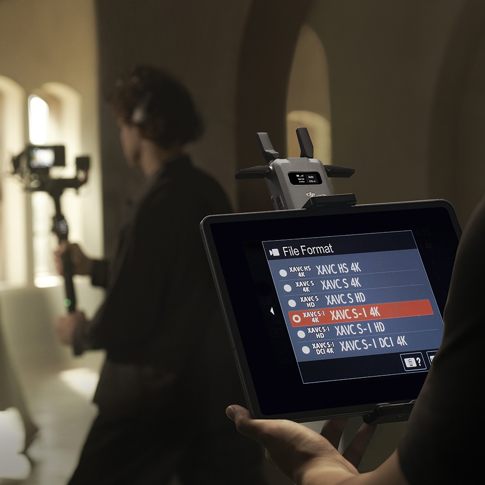 DJI SDR Transmissionは、最大3 kmの伝送距離を実現し[1]、広範囲のダイナミックな撮影シナリオに対応します。また、優れた透過性も発揮するため、多様で複雑な撮影シナリオにおいても、ライブ映像のモニタリングニーズに応えることができます。20 Mbpsの高ビットレート、1080pのフルHD画質