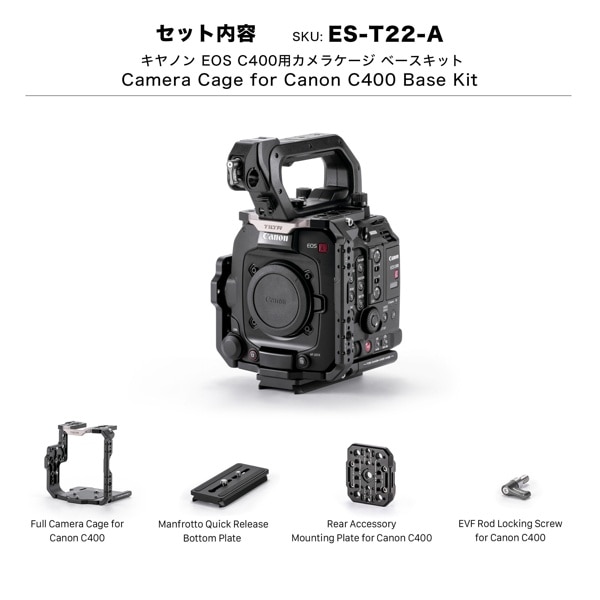 EOS C400用カメラケージは、カメラ本体を保護し、さまざまなアクセサリーを固定して機能性を向上させます。
