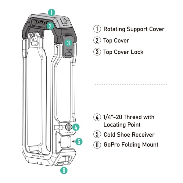クイックリリースデザインにより、ケージを素早く取り付けまたは取り外すことができ、カメラボディに素早くアクセスできます。また、すべてのユーザーボタンとバッテリーコンパートメントに素早くアクセスでき、バッテリー交換もスムーズです。