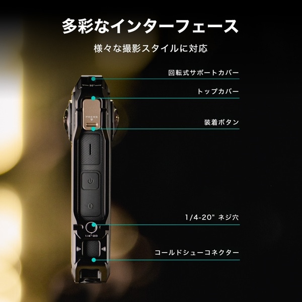 このカメラケージは、Insta360 X4の保護を強化し、アクションカメラの取り付けと操作の柔軟性を向上させます。