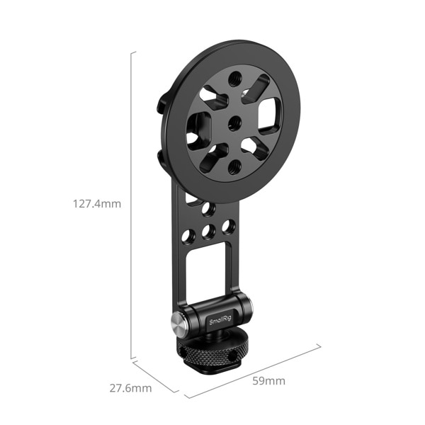 底部には 1/4 インチ - 20 のネジ穴が 1 つと、自撮り棒、三脚、ケージ、スタビライザーに取り付けるためのコールドシューマウントが付いています。モジュール設計により、上部の丸いプレートを取り外して、マイクやボールヘッド自撮り棒などのアクセサリ用の多機能取り付けプレートとして使用できます。
