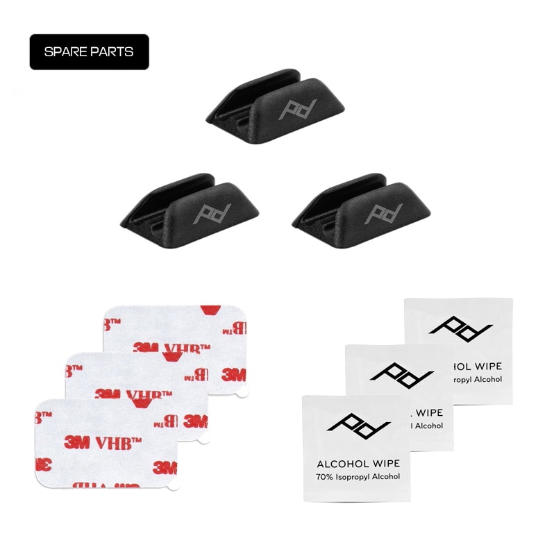 3M VHB粘着パッドとケーブル クリップがそれぞれ3つずつ入ったスペアパーツセットです。アルコーパッドも3枚付属しています。