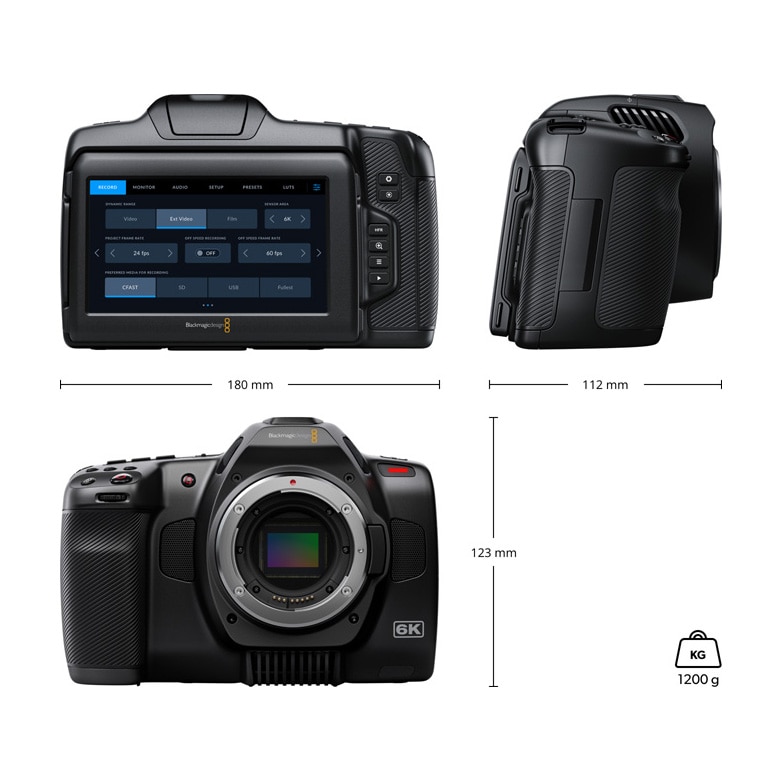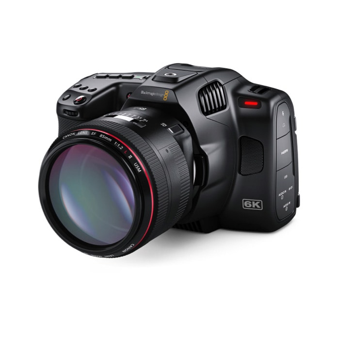 6144 x 3456解像度のスーパー35センサーおよびEFレンズマウントを搭載したBlackmagic Pocket Cinema Camera 6K G2は、写真用EFレンズを使用でき、浅い被写界深度でシネマライクなショットが得られます。ティルト調整可能なLCD、ビューファインダーマウント、ミニXLRオーディオ入力を搭載、NP-F570式バッテリーをサポート。仕様