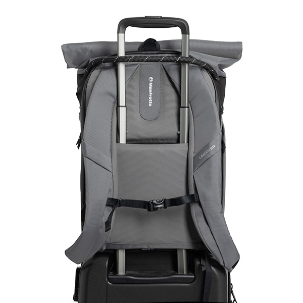 通気性に優れたバックパネルとパッド入りのショルダーベルトが、一日を通して快適性を提供します。加えて、バックパネルにはパススルー式のトロリースリーブを装備。スーツケースのハンドルに通して快適に持ち運ぶこともできます。小型三脚に対応するサイドポケットと、固定用ストラップも備わっています。