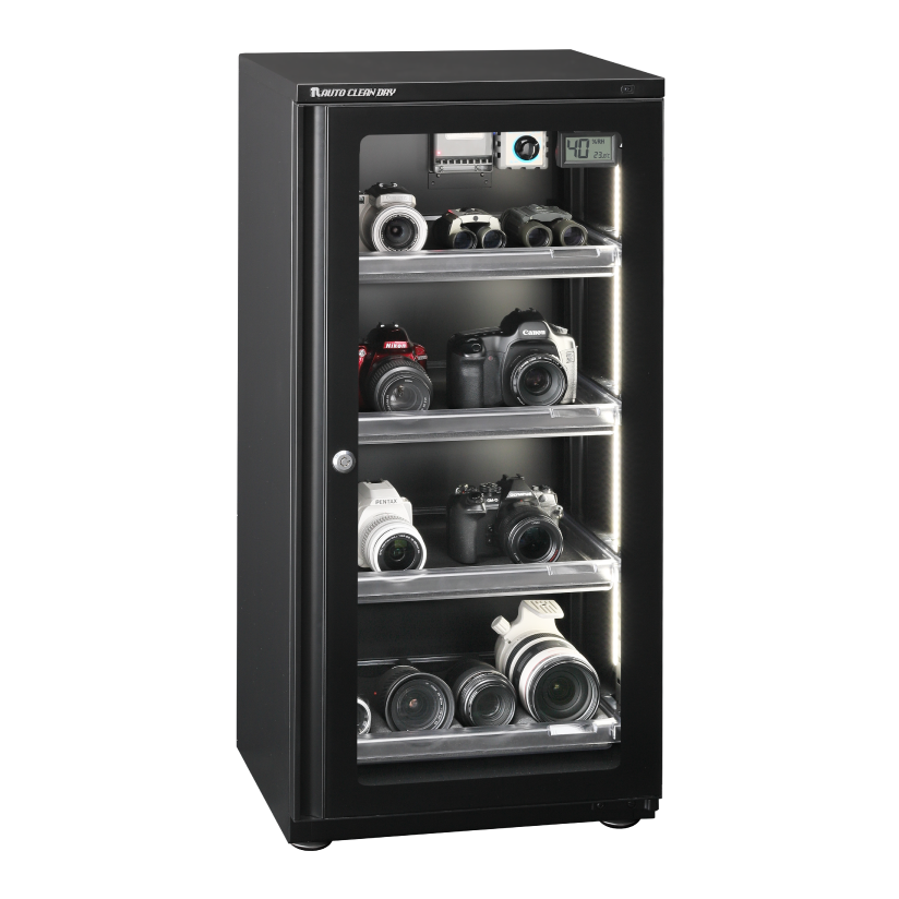 庫内を最適な湿度に保ち、カメラ・レンズ・メディア等をカビ・ホコリから守ります。