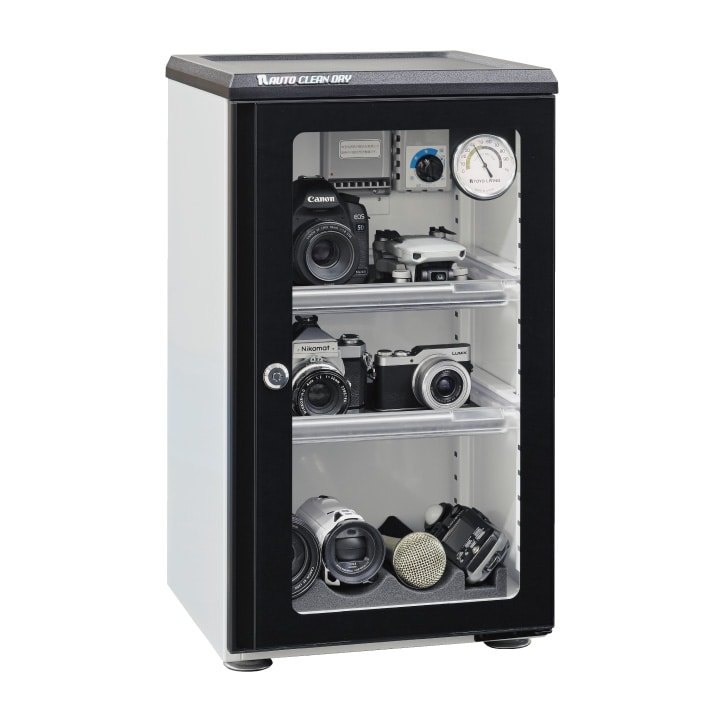 庫内を最適な湿度に保ち、カメラ・レンズ・メディア等をカビ・ホコリから守ります。
