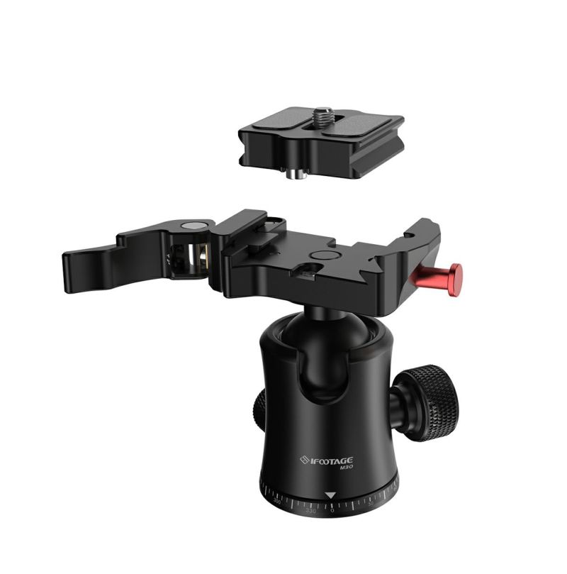軽量コンパクトで汎用性の高い自由雲台です。38mm(アルカスイス互換)、および50mm(ビデオ雲台用)のクイックリリースプレートに対応。