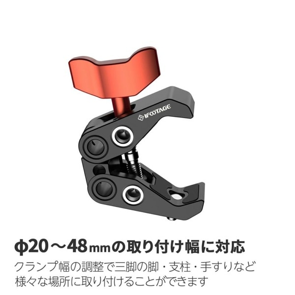 Φ20~48mmに対応。三脚の脚、支柱、手すり等の様々な場所に取り付けることができます。・アクセサリの取り付けに便利