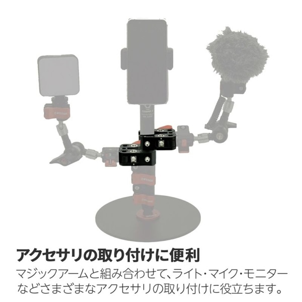 マジックアームと組み合わせて、ライト、マイク、モニター等のアクセサリの取り付けに役立ちます。・優れた剛性