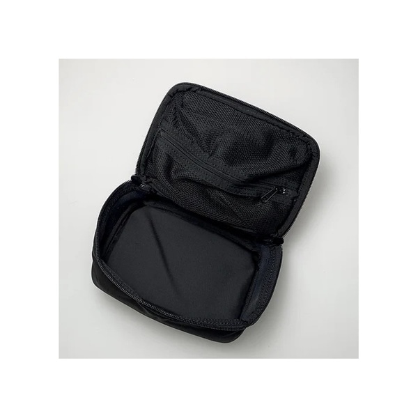 ファスナーが全開でき、中にはチャック付きのメッシュのポケットを装備。
