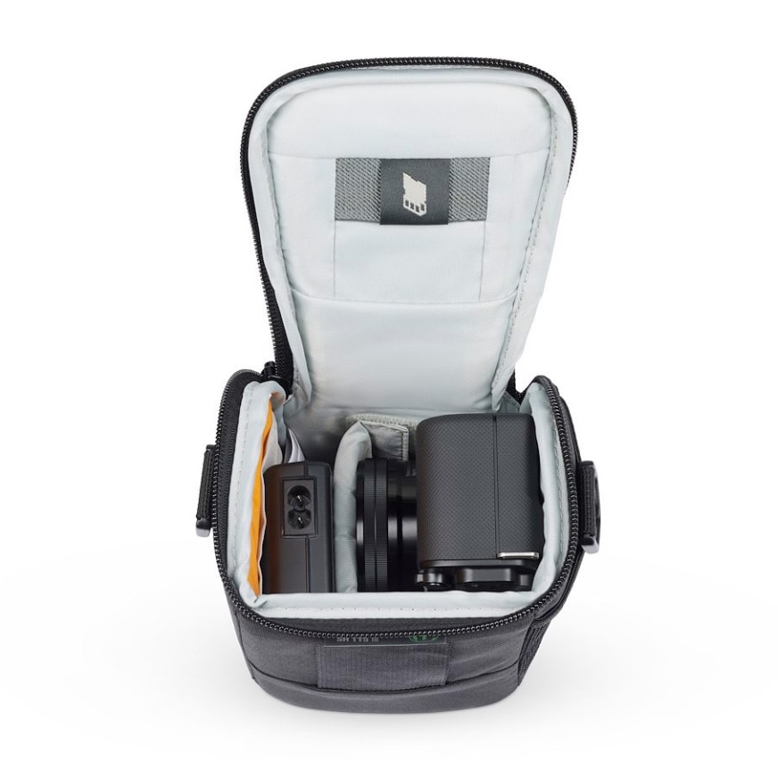 ズームレンズ付きミラーレスカメラ(Sony α6600など)、メモリーカードやアクセサリーなどグリーンライン生地使用率84%