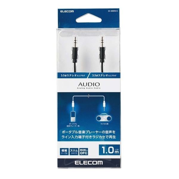 音楽プレーヤーなどの音声をライン入力端子搭載のラジカセやコンポなで再生できる、コンパクトで取り回しがしやすい3.5Φステレオミニプラグケーブルです。極細ケーブルを採用