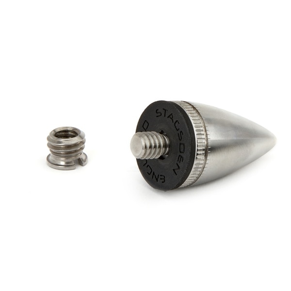 ヒールズは、コンクリートや岩のような硬い地面だけでなく、カーペットやビニールのような柔らかい場所へも使用できるスパイクです。丈夫なステンレス鋼製で地形や天候を選ばず、長時間の使用にも耐えられます。1/4 インチネジまたは、3/8 インチスレッドアダプターを使用して取り付けます。