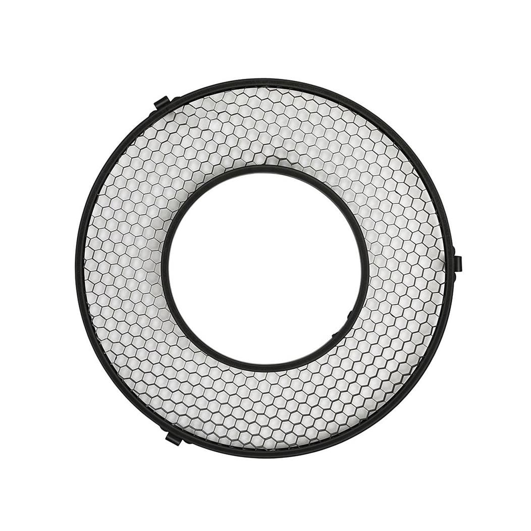 リングフラッシュに装着可能なハニカムグリッドは、光の拡散を抑えたライティング(照射角度は20°/30°/40°)をもたらすアクセサリーです。