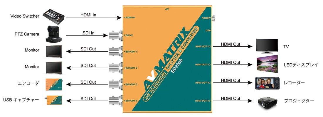 ・SDI 4系統とHDMI4系統の同時分配出力・3G/HD/SD-SDIマルチフォーマット対応