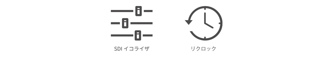 入力信号はSMPTE規格に準拠した3G/HD/SD-SDIの信号に対応します。※2) また、SDI出力端子側にはドライバチップを搭載。入力されたSDI信号をドライバチップによりクロック補正とリタイミングされた状態で出力されます。