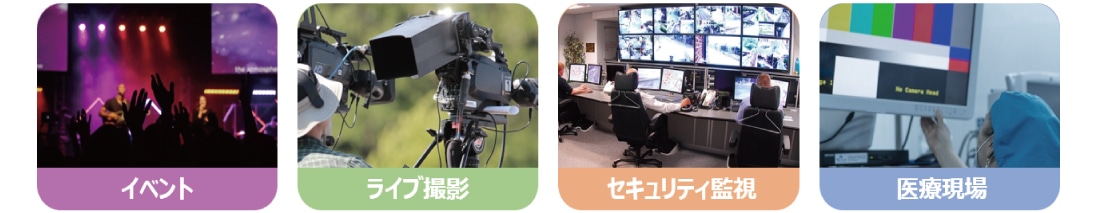 3G-SDI分配器シリーズは、安定した信号品質が必要となる放送局やライブ会場はもちろんのこと、イベント会場、スタジオ、工場、医療など様々な現場でご利用いただけます。