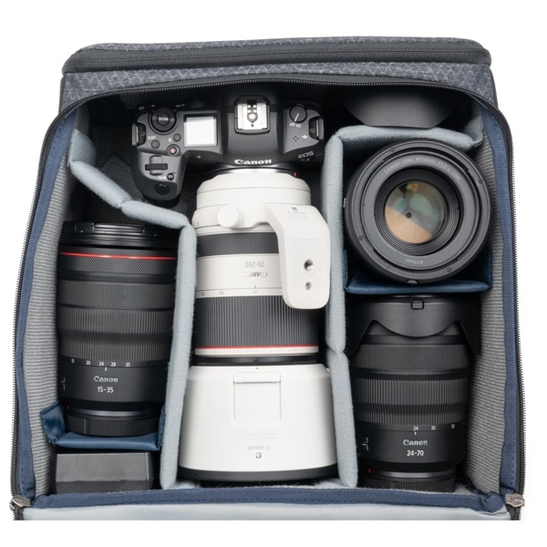 ミラーレスカメラや中型一眼レフ1台とレンズ1-2本、フラッシュ1台です。最大収納レンズは、カメラから取り外した状態で70-200mm F4です。 ミラーレスカメラや中型一眼レフ1-2台とレンズ3本、フラッシュ1台です。最大収納レンズは、カメラから取り外した状態で70-200mm F4です。 収納目安はグリップ付き一眼レフ1台とレンズ2-4本、フラッシュ1台です。最大収納レンズは、カメラから取り外した状態で70-200mm F4です。 収納目安はミラーレスカメラや中型一眼レフ1-2台とレンズ3-5本で、ほかフラッシュなどアクセサリーを収納できます。最大収納レンズは70-200mm F2.8です。収納目安はグリップ付き一眼レフ1-2台とレンズ3-6本で、ほかフラッシュなどアクセサリーを収納できます。最大収納レンズは70-200mm F2.8です。