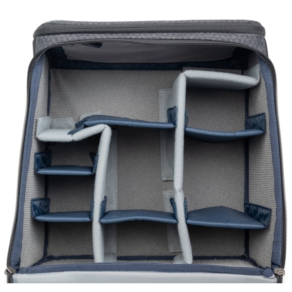 クッション性のある内装と自由に配置できる中仕切りで、移動中も大切な機材をしっかりと保護します。