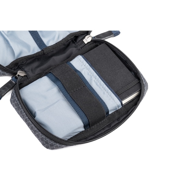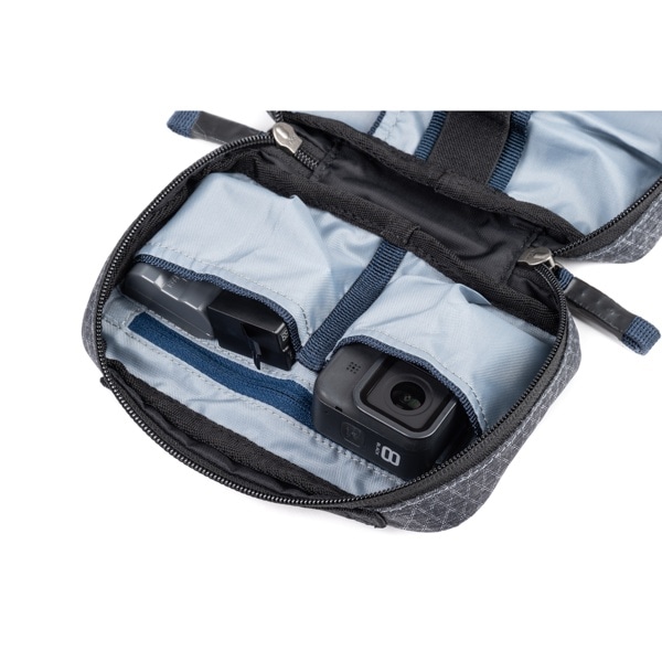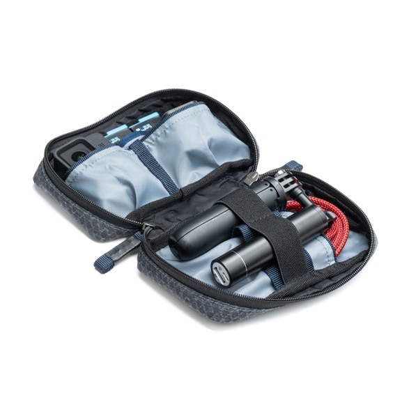 EDCテクポーチは、バッグの中で迷子になりがちなメモリーカードやケーブル、工具などの小物類を整理して収納・持ち運びができるポーチです。