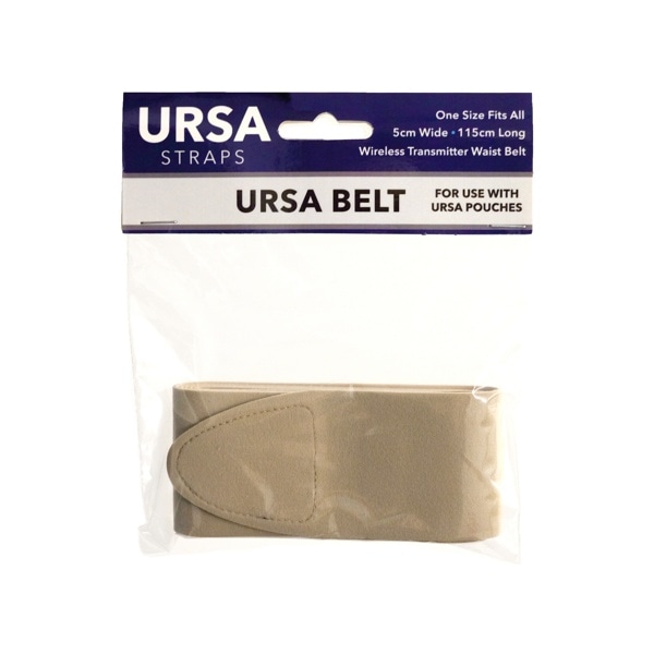 URSA BELTは、幅5cm / 長さ115cmで、小さなウエストに合わせてハサミで切ることもできます。URSA ポーチ(別売り)で使用するように設計されており、カラーはベージュとブラックの 2色をラインナップ。送受信機をクリップで留めるストラップとして使用することもできます。ポーチを二つ装着したり、送受信機の位置を簡単に変更できますので、様々な場面で応用可能です