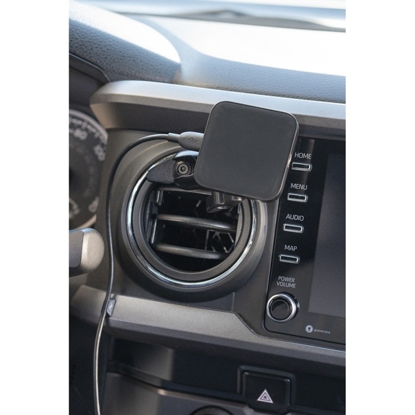 SlimLink™(スリムリンク)のソフトロックでスマートフォンを固定し、車両のシガーソケットや充電用 USB 端子より給電します。