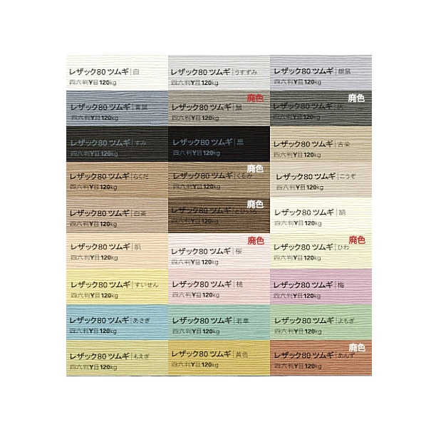 八丈島特有の風土が生み出した八丈白紬の肌をモデルに、平安朝の伝統色から精選された優美な色合いや草木染の自然な趣を伝える深みのある色を持つファンシーペーパーです。