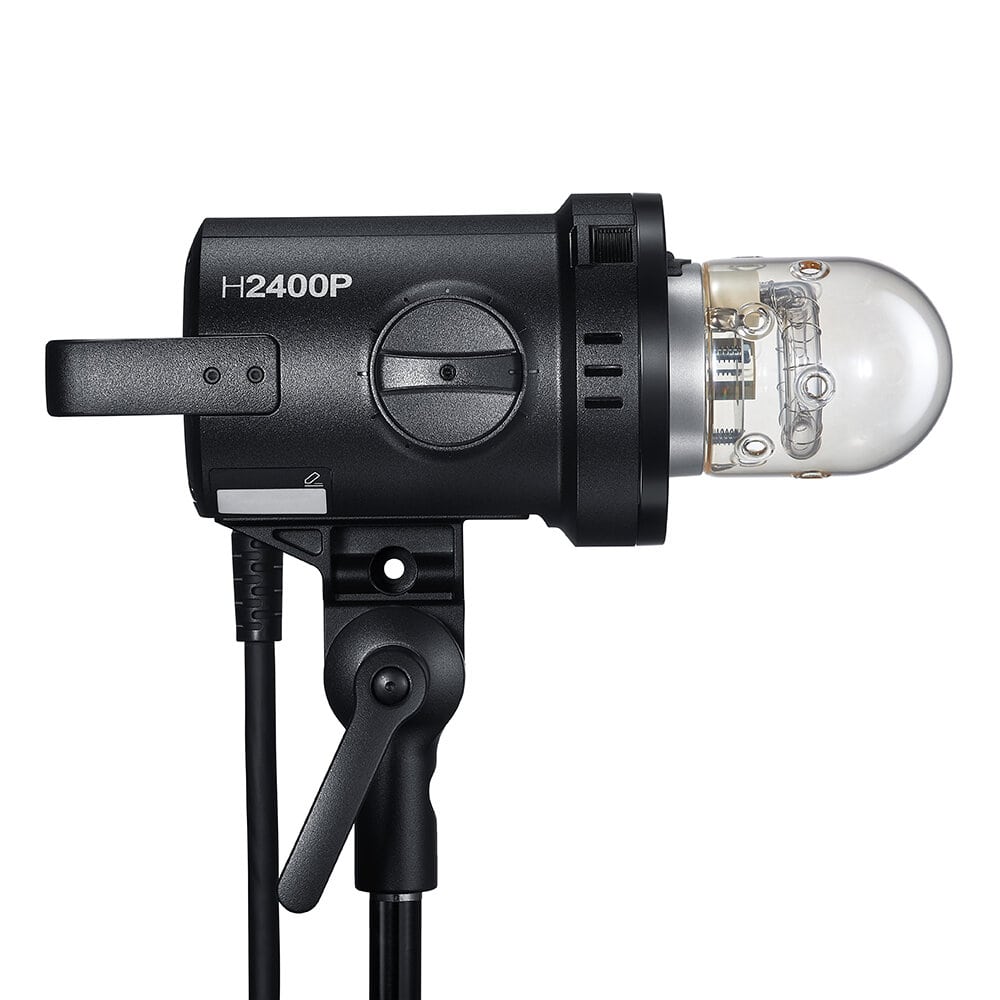 専用のヘッド「H2400P」を2灯接続可能です(2灯の合計出力2400W以内で動作します)。※AD1200用のヘッド「H1200P」とミックスした接続は不可。「H1200P」を2灯接続した場合は合計出力が1200Wまでとなります。
