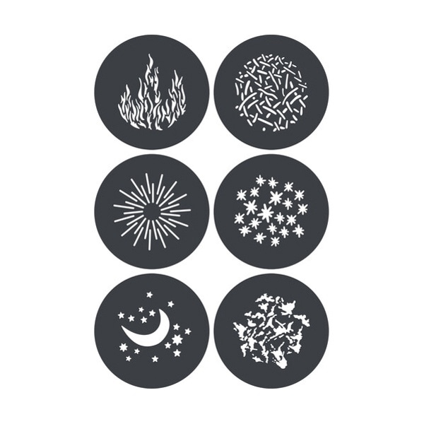 さまざまな模様を投影できるゴボセットが4種類、またゴボをセットするためのホルダーをラインアップしています。