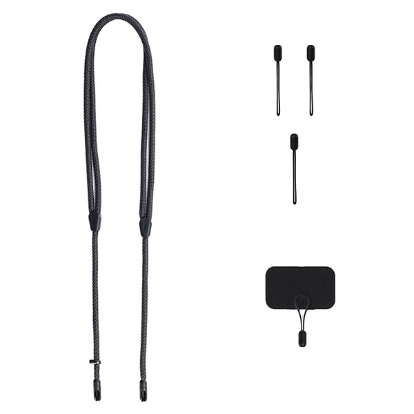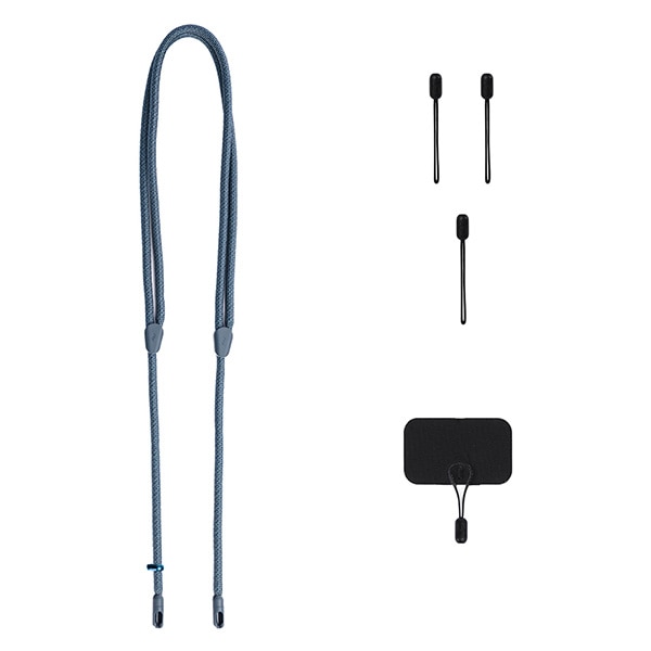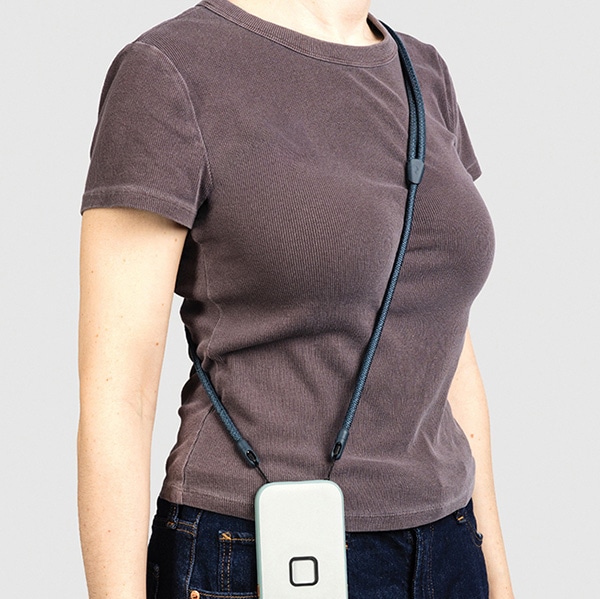 「モバイル クロスボディ ストラップ」は、すっきりとした印象を与える、シンプルな2点支持のショルダーストラップです。アクセサリーループを活用することで、1点支持への切り替えや、デバイスを外した際にストラップを体に沿わせてまとめておけます。