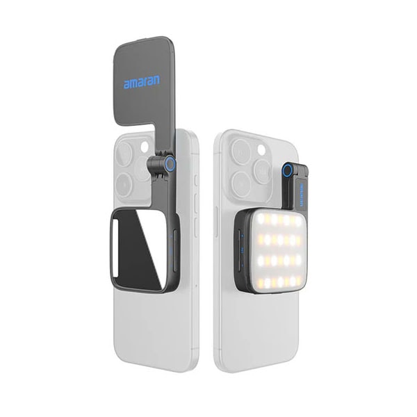 amaran Goは、マグネット付き(Apple社MagSafe対応)、スマートフォン向けの超小型LEDライトです。汎用性の高いフリップ型で業界初のミラー付のLEDライトが登場しました。より持ち運びがしやすく、従来のクリップオンライトの代わりとなるライト、セットアップもシンプルで使用しやすくなっています。