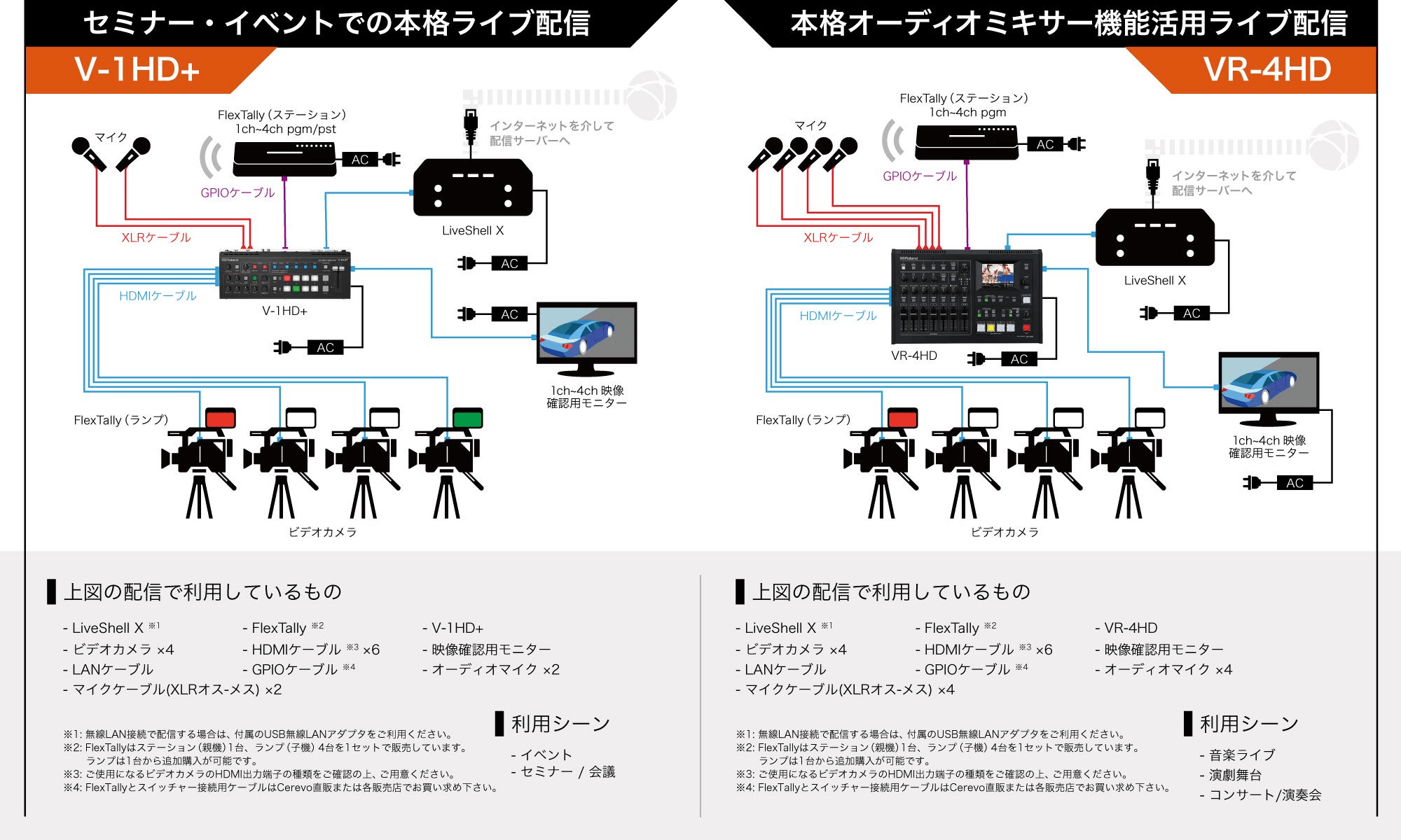 | 対応製品 | 各社スイッチャーに対応。機種により専用GPIOケーブルや変換アダプタが必要な場合がございます(別売) ※専用ケーブルはCerevoオフィシャルストアにて取り扱いがございます。詳しくはCerevoオフィシャルストアページをご覧ください。 |