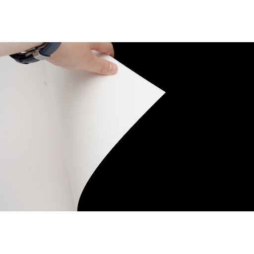 しっとりとした表面で光を吸収するので多目的に使用出来ます。厚手ボード状なので平面性が良好です。大きく丸められます。