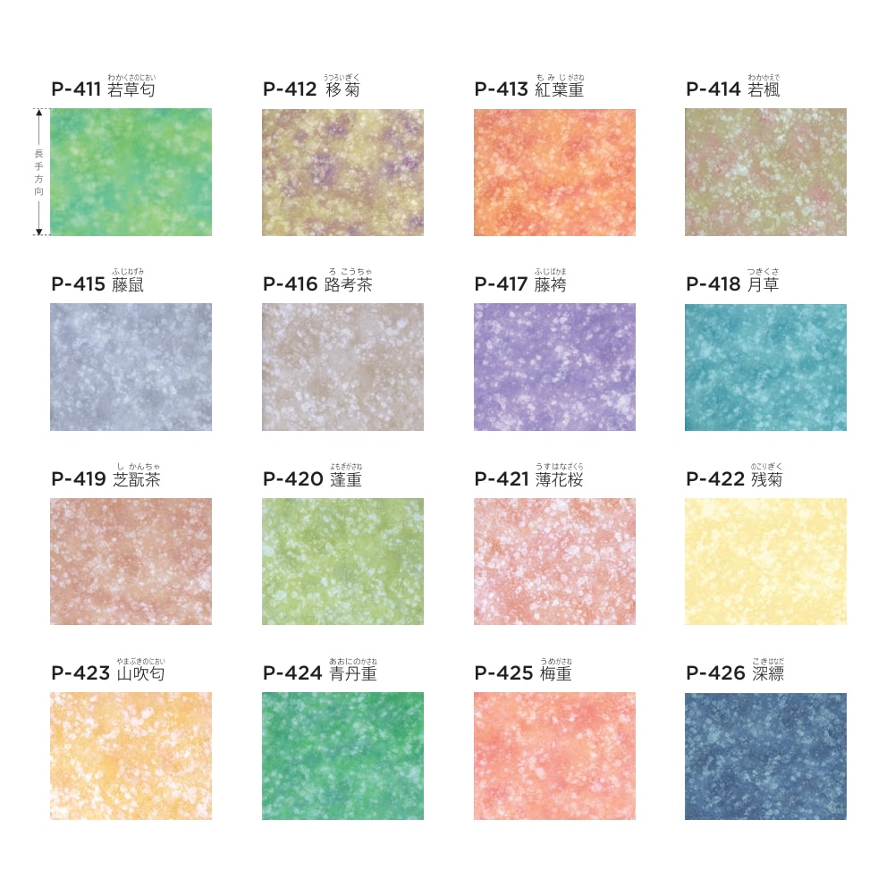 ・生なり色(P-80、P-81、P-85、PN-80、PN-81)・石目調・木目調・ろうけつ染め調は、紫外線による退色がございますので外部での使用はお避けください。