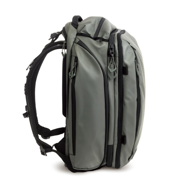 一日中背負いながら活動しても快適に持ち運べる、旅や撮影シーンにぴったりのバックパックです。バッグ外側のジッパーで容量を 5L 増やすことができ、充分な容量を誇ります。