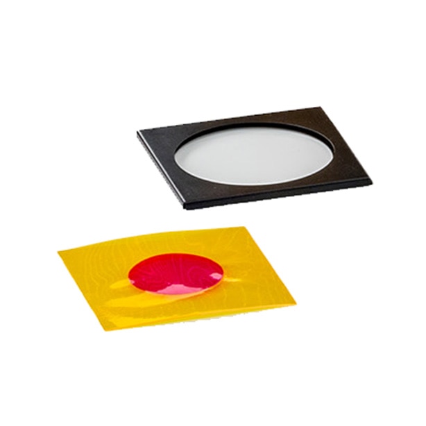 ■7.5×7.5cm(3×3 インチ)は、従来のハロゲンタイプデドライト DLH4(150W)に直接挿入できるほか、フォーカシングタイプLEDライトのDLED4、DLED7、およびHMI ライトの DLH200D にも使用することができます。