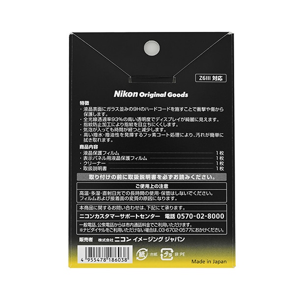 Z6III専用の液晶保護フィルムです。液晶表面にガラス並みの9Hのハードコードを施すことで、衝撃や傷から保護します。