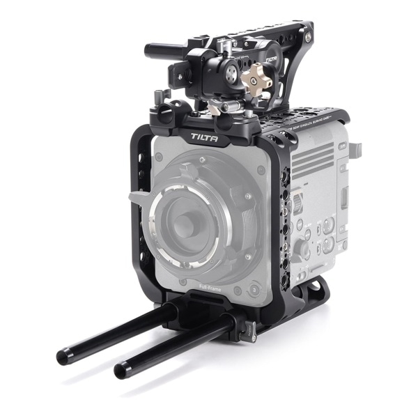 ソニー BURANO用カメラリグ ベーシックキットには、カメラケージの他にトップハンドル、ロッド、回転式EVFブラケットが含まれます。カラー / 型番